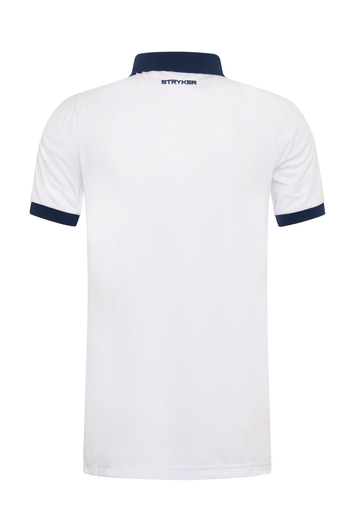 - Rückseite: 3D-Druck "STRYKER" in Navy Blue in Nackenhöhe